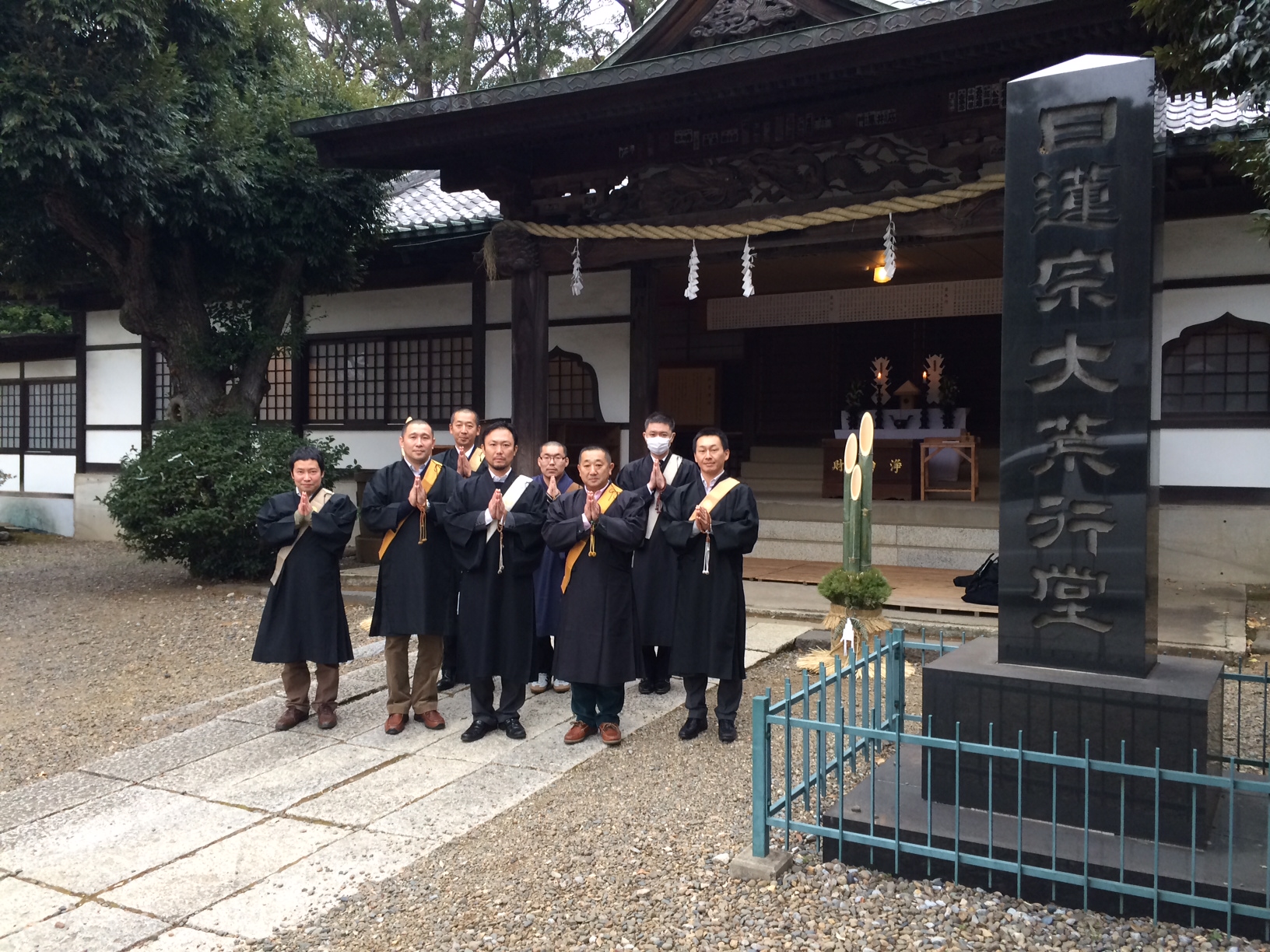 平成26年1月8日(水) 南部より入行されております5名の行僧に吉塚修法師会長をはじめ幹事8名で面会をして来ました。5名の行僧たちはだいぶ痩せられ、声もガラガラになっており、厳しい修行がなされているのが目に見えてわかりました。2月10日の終了まで一心清浄に頑張っていただきたいと励ましてきました。